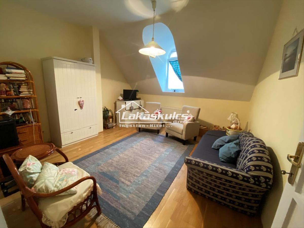 Az alsó szinten 40 nm -es hangulatos nappali, étkező, konyha, melyek egymással átjárhatók, valamint egy nagy háló, nagy fürdő, külön wc, kamra és kazánház, 2 nagy méretű, kiülős, óriás terasz. Az emeleten 4 szoba, 2 fürdő, wc és egy további helyiség, ami igény szerint konyhának vagy gardróbnak is használható. 10 Nm-es erkély, kilátással a Balatonra.