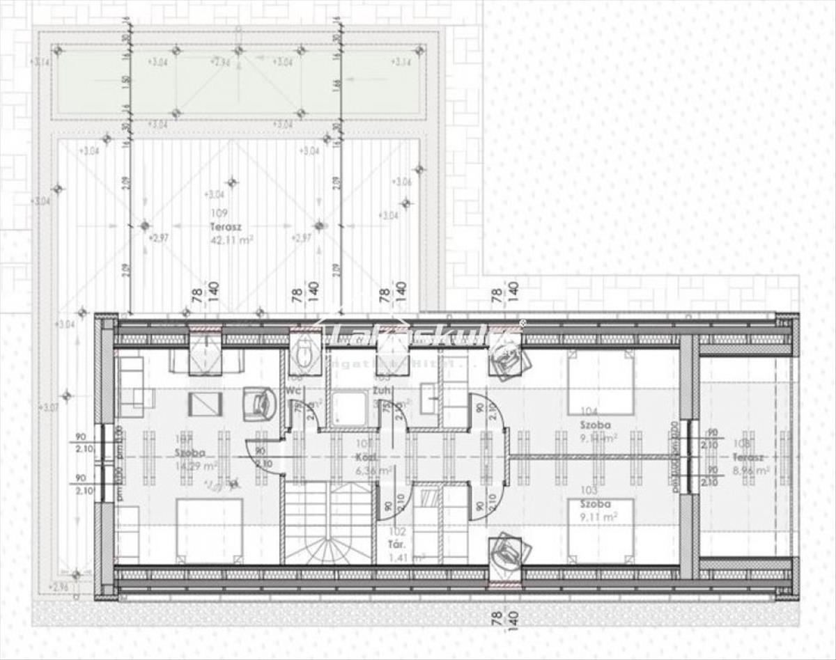 Alsó szint: 109 m2 + 50 m2 terasz