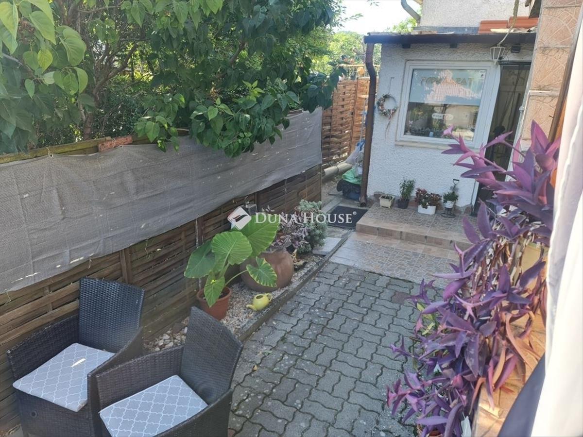 Külön belső kerítés osztja meg a telekrészt: zavartalan, fedett kerti kiülő az egyik oldalon, külön bejárat az üzlethelyiséghez a másikon