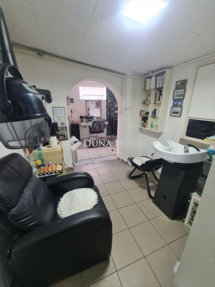 Üzlethelyiség (23, 9 m² + 10 m² tetőtér): jelenleg fodrászüzletként működik, külön bejárattal, de belső átjárással is rendelkezik