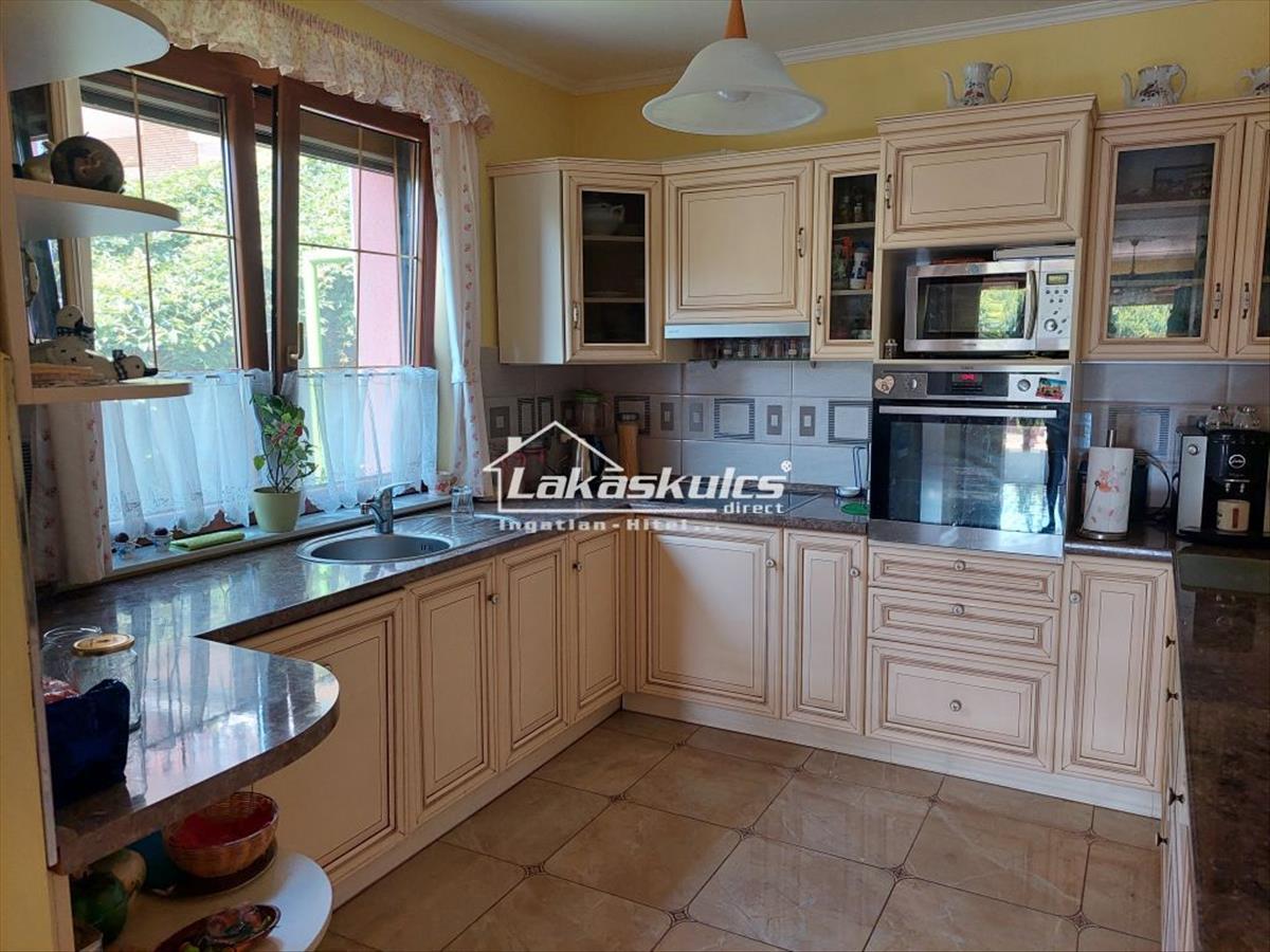 A lakótér 200 nm, ahol a két lakószint akár külön élettérként, akár egy nagy családnak ideálisan használható. a földszinten kényelmes, világos és tágas amerikai konyhás nappali található egy 25 nm-es napfényes terasszal. a megfelelő hőmérsékletet a nappaliban a padlófűtésen kívül(gáz) egy gyönyörű kandalló is biztosítja. Két nagyobb hálószoba(az egyik gardróbbal) és egy dolgozó szoba található még a földszinten. a hálószobákban radiátor adja a meleget.