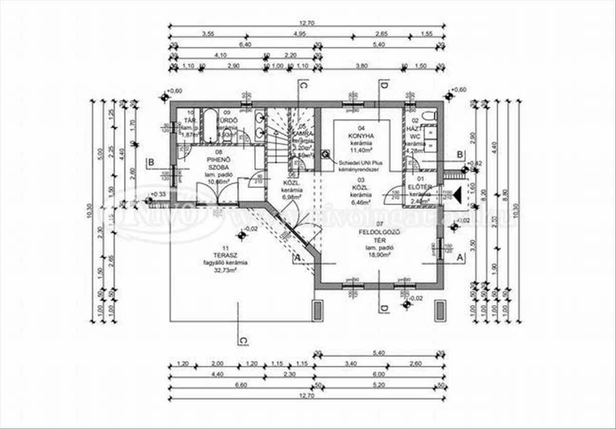 - Héjazat: téglavörös színű kerámia cserépfedés