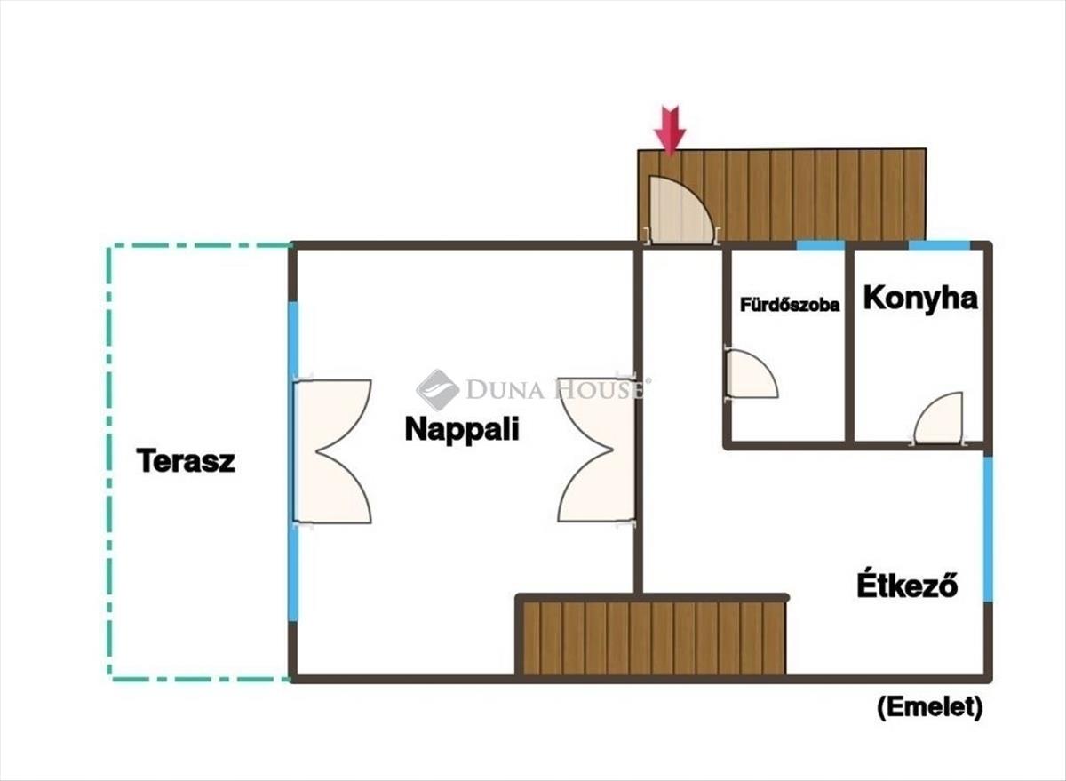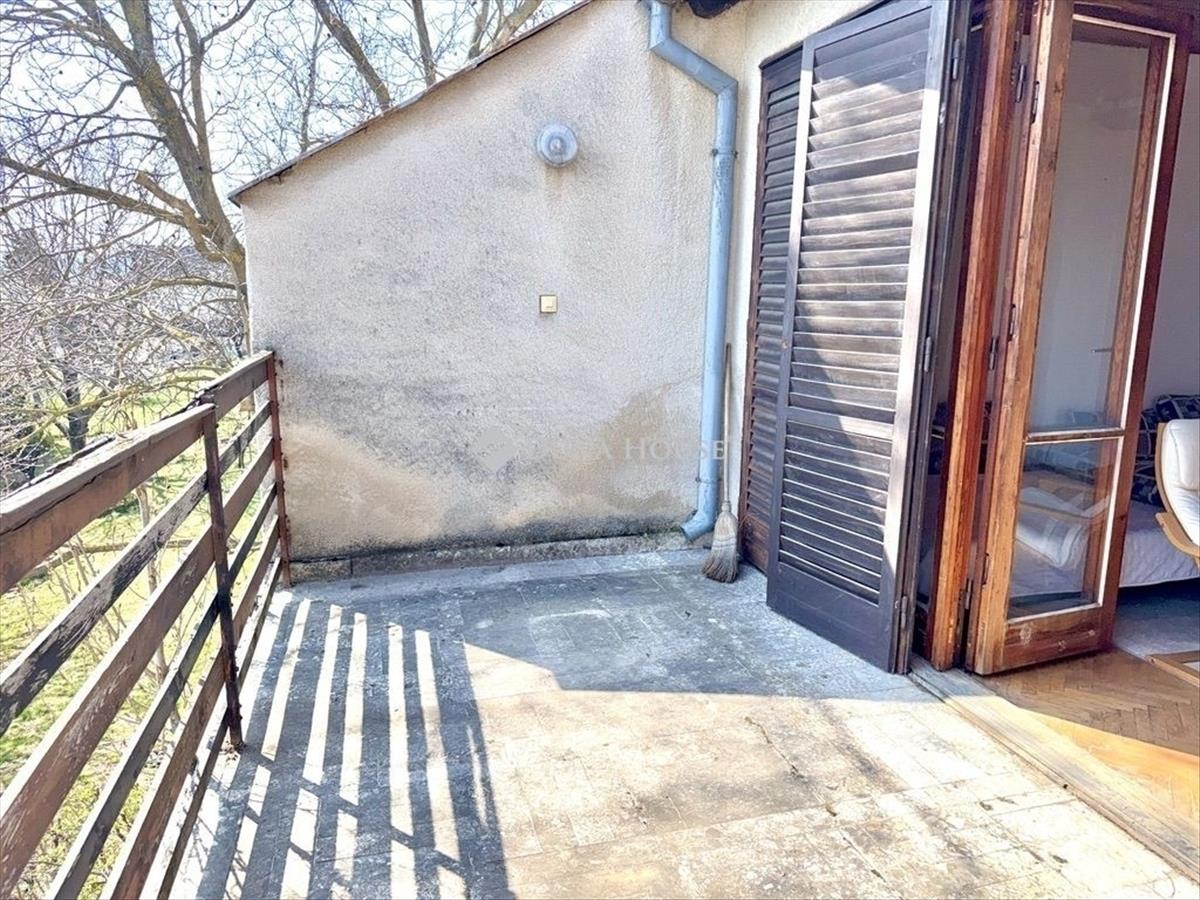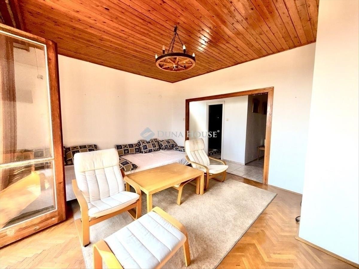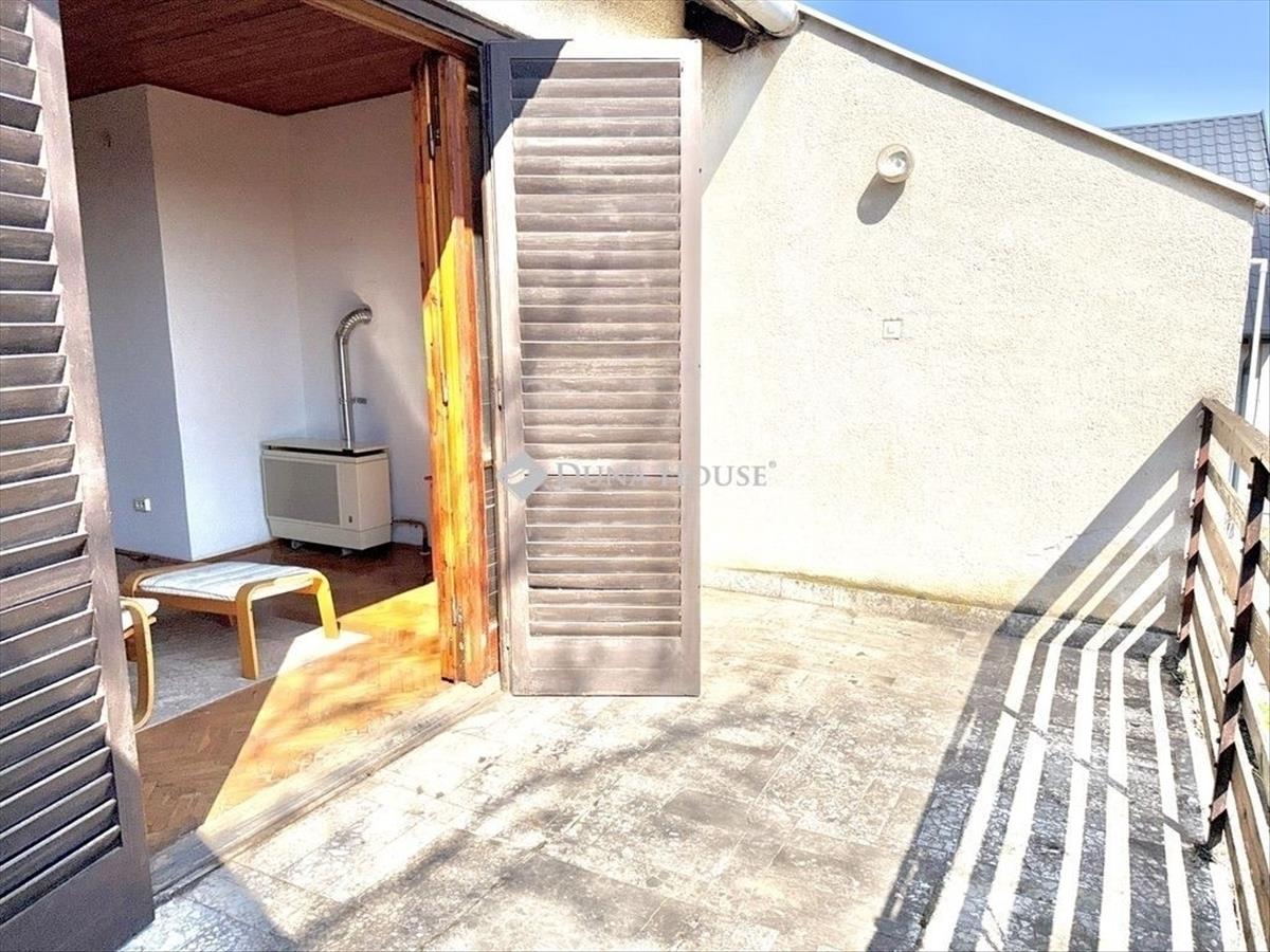 Kertszinten 3 szoba, emeleten egy nagy nappali terasszal. És igen, a terasz az a pont, ahol összeáll a kép: ezért az ingatlanért jönnek ide a vevők.