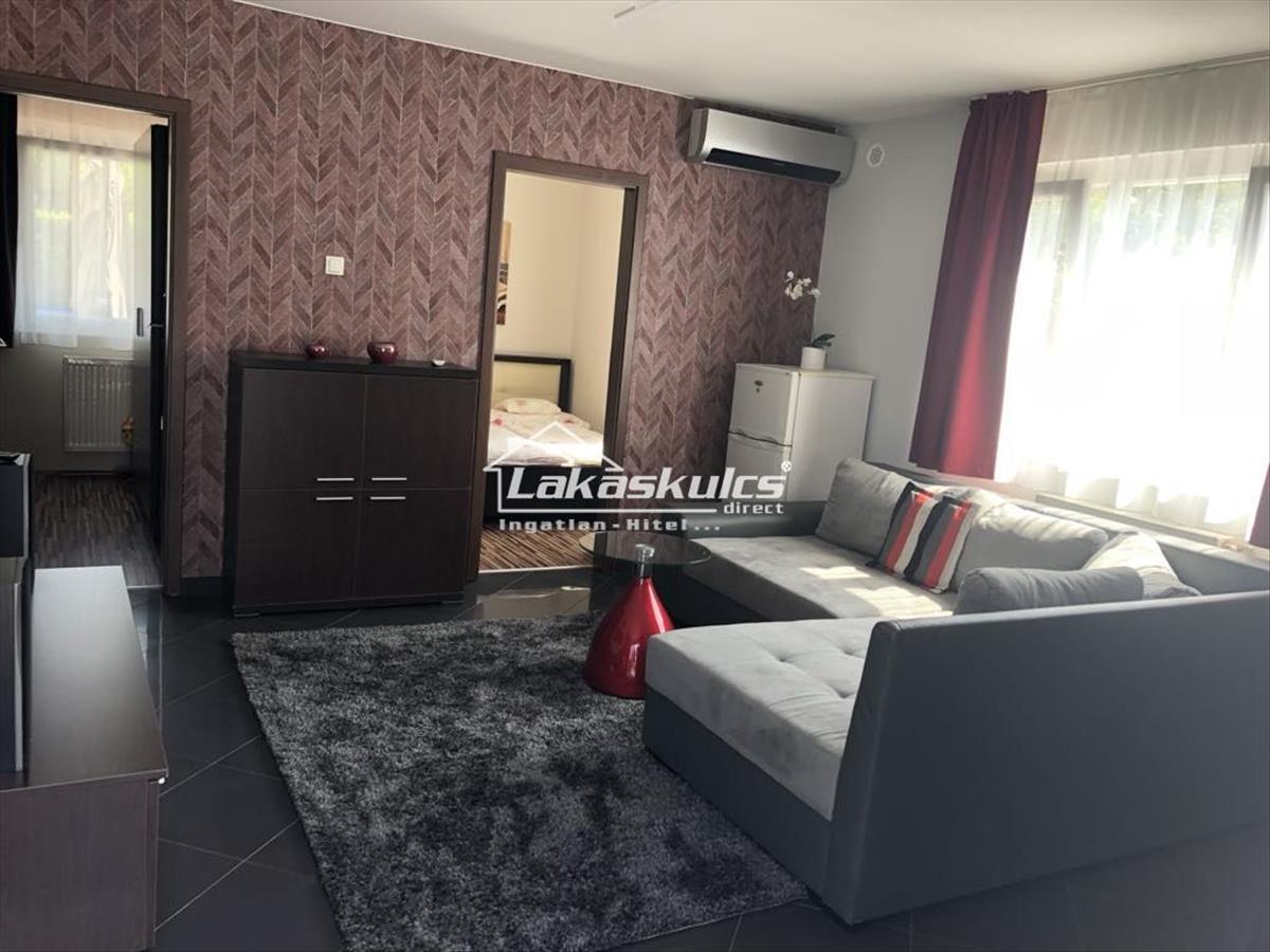Az alsó szinten három külön bejáratú apartman található, mindegyik saját terasszal, kertrésszel. Az apartmanok 45-45-28 nm-esek, saját fürdőszobával, konyhával és a 45 nm nagyságúak két szobával. Légkondicionálóval hűthető, jól felszeret, kényelmes külön bejáratú lakások, így ideálisak kiadásra is.