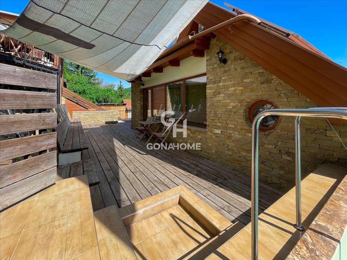 Az ingatlan épült kiváló minőségi alapanyagokból. Dupla szigetelésű tető 35 cm szigeteléssel, a nyílászárók fából készültek 3 rétegű hőszigetelt üvegből. a beépített bútorok minőségi natúrfa az egész ingatlanon belül, beleértve az egyedi grillteraszt is!