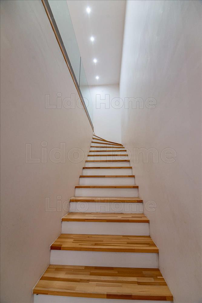 -A földszinten található a dupla garázs, közösségi tér, kiszolgáló helyiségek, valamint egy vendég blokk mely kettő szobát és egy zuhanyzót foglal magába