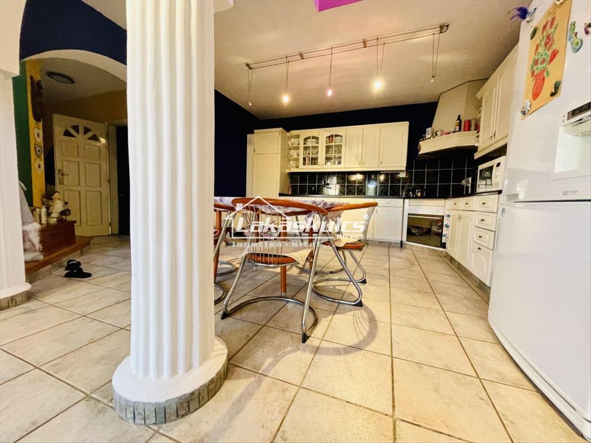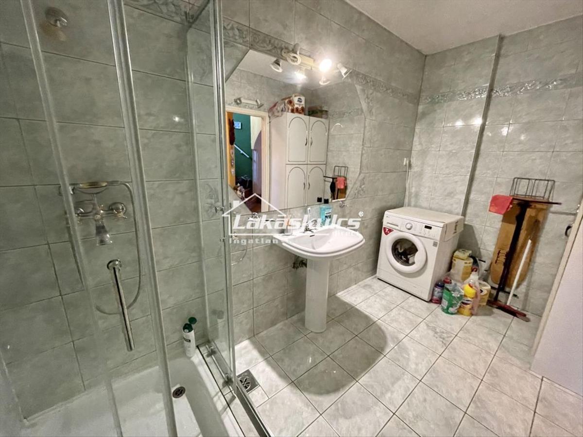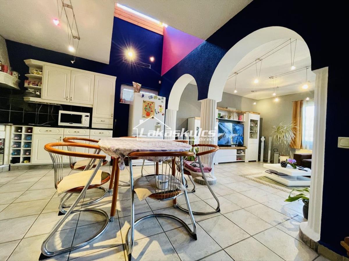 Földszint helyiségei: előtér, nagy méretű konyha kis szinteltolással, gyönyörű oszlop elválasztással egy tágas nappali, tágas zuhanyzós, dupla mosdós fürdőszoba.