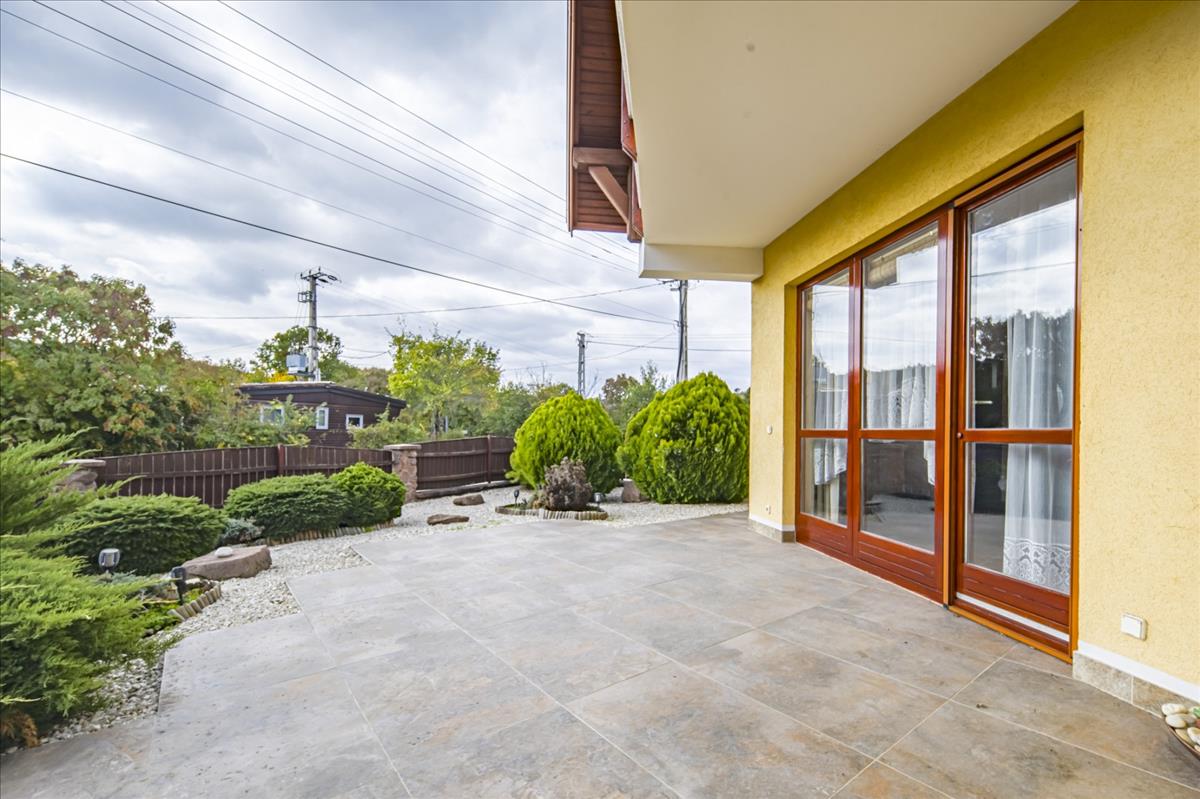 A két nagyméretű terasz/ 10 m2 és 25 m2/ és a gondozott kert a mindennapi pihenéshez és a kerti partikhoz is kiváló helyszínt biztosítanak.