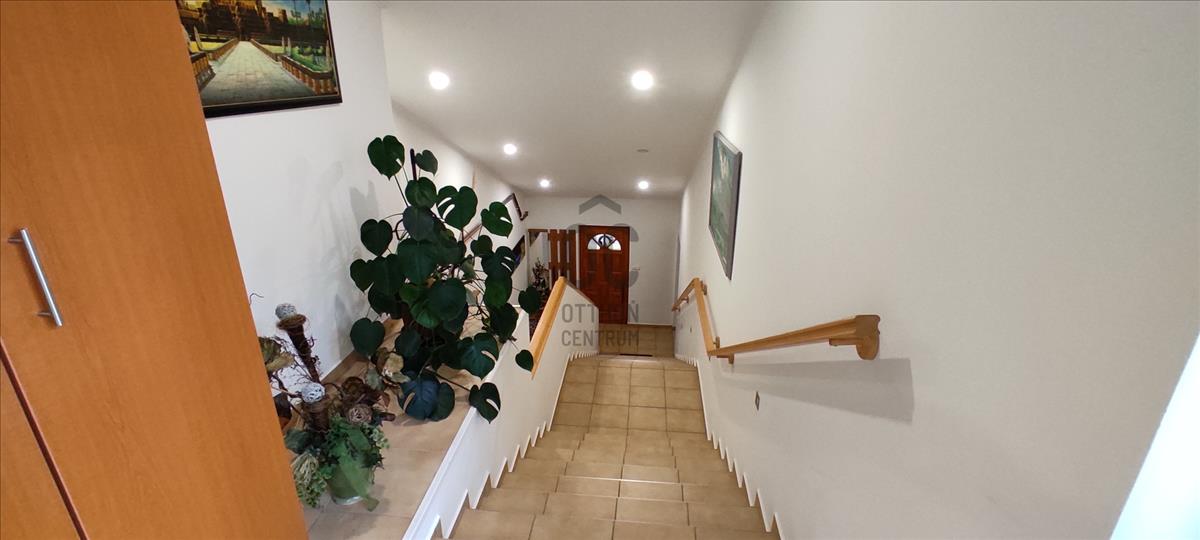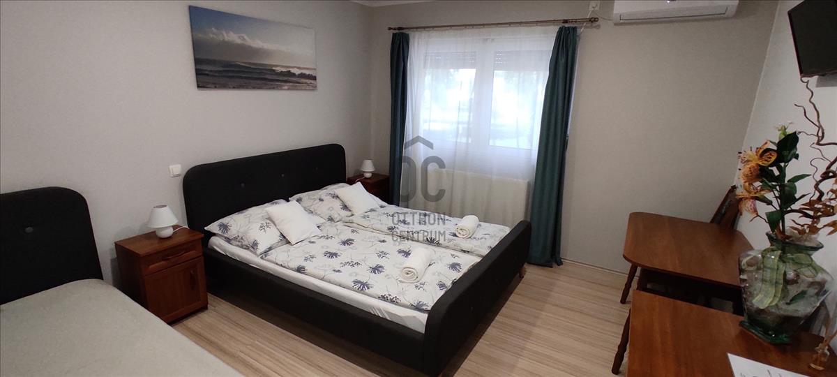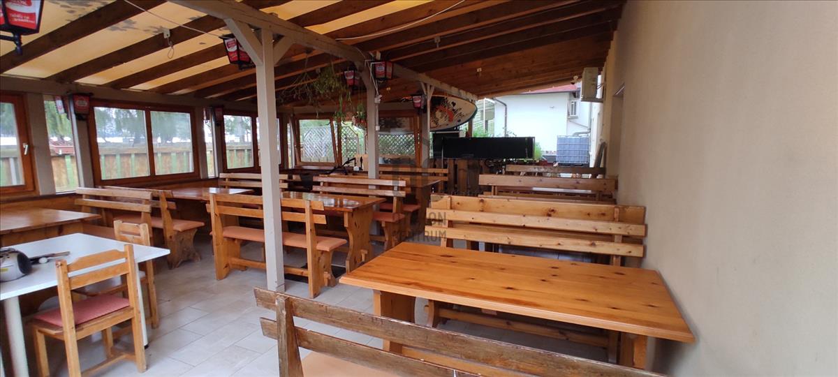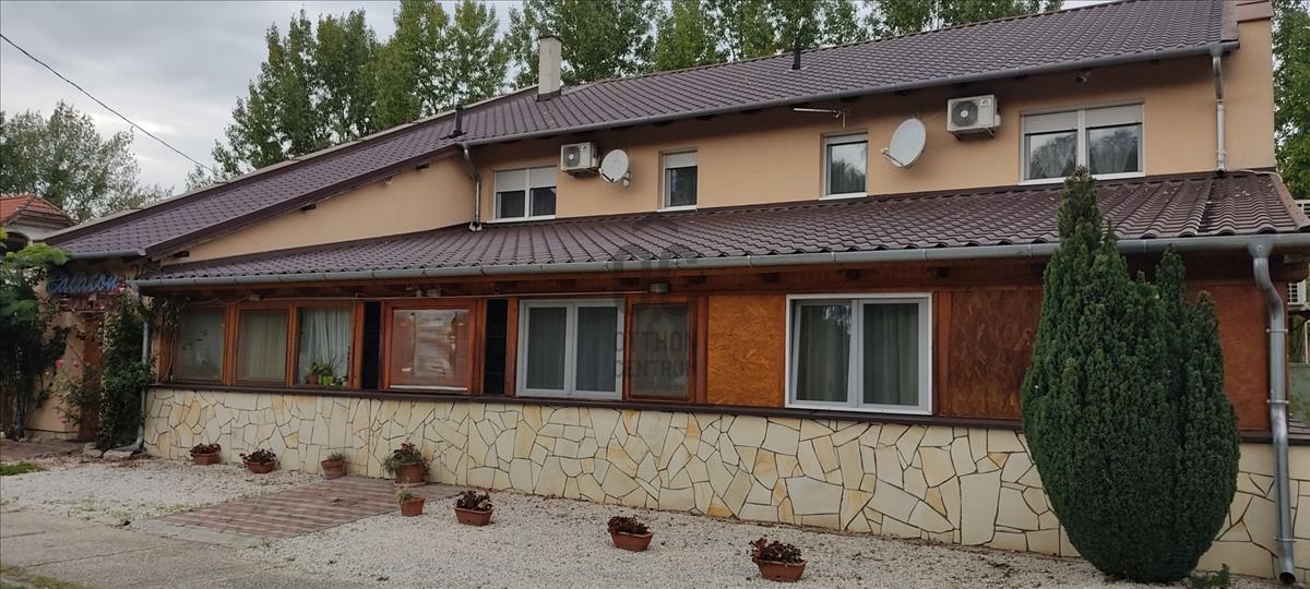 A földszinten komplett étterem a szükséges kiszolgáló létesítményekkel, hűtőkamrával, valamint 2 szobás lakás és 2 apartman kapott helyet.