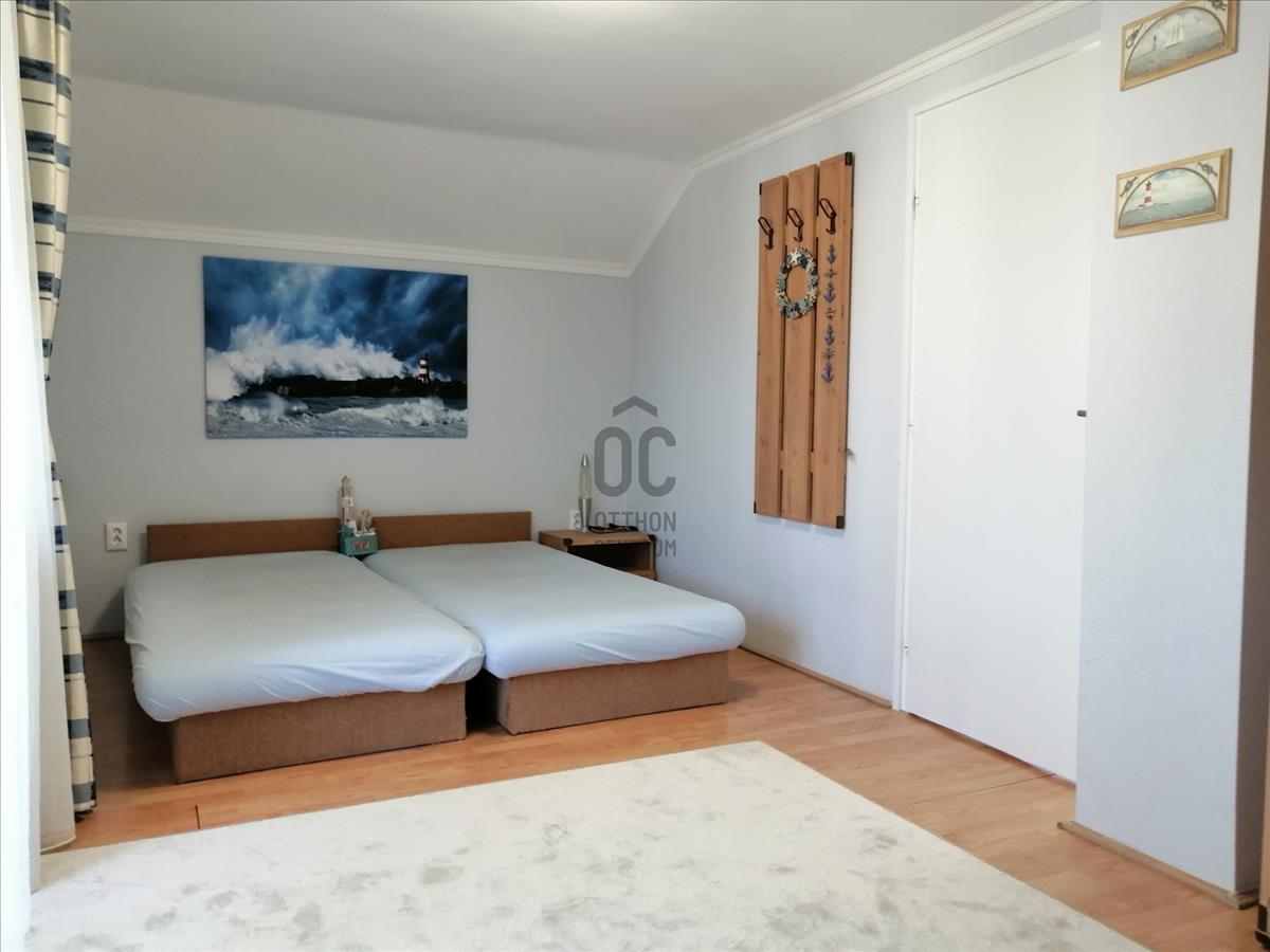 - a tulajdonosok tudomása szerint a ház 1987-ben épült. Nagy közösségi terek jellemzik, de igény esetén elvonulást biztosít a pihenni vágyók részére. a belső terek jól átgondoltak és praktikusak, 2 hálószoba, és 3 félszoba biztosítja a család együttélését, akár 13 fő elszállásolásával, így teret adva a kellemes nyári összejövetelek helyszíneként.