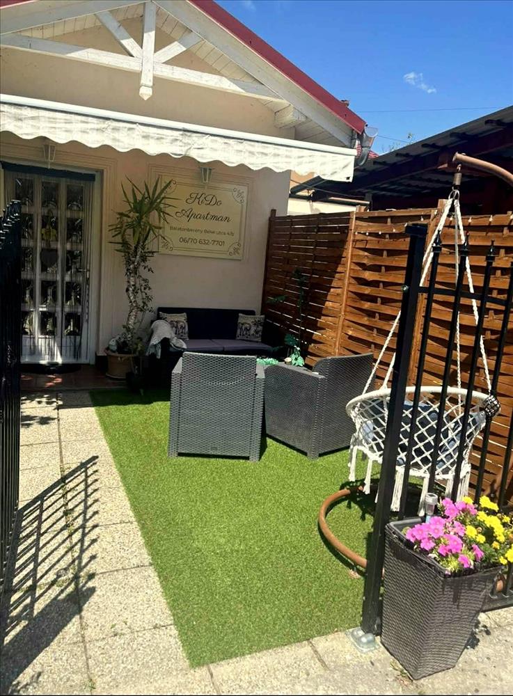 A telken található egy teljesen különálló, 30 négyzetméteres felújított apartman is, amely saját almérővel rendelkezik. Az apartman egy konyhából, nappaliból, egy hálószobából, fürdőből és előtérből áll, valamint egy 15 négyzetméteres terasz is tartozik hozzá. Fűtését klíma és csendes konvektor biztosítja, a melegvizet pedig egy modern Ariston okos bojler szolgáltatja. Ez a külön lakrész ideális vendégek fogadására vagy kiadásra, így akár folyamatos bevételi lehetőséget is jelenthet. a telken egy 10 négyzetméteres lemeztároló, egy 18 négyzetméteres betongarázs, valamint az ingatlan előtt egy 36 négyzetméteres dupla kocsibeálló is kialakításra került. a környék infrastruktúrája kiváló, a közelben orvosi rendelő, óvoda, élelmiszerbolt, éttermek és kozmetika is megtalálható, miközben a Balaton partja mindössze néhány perc sétára van.