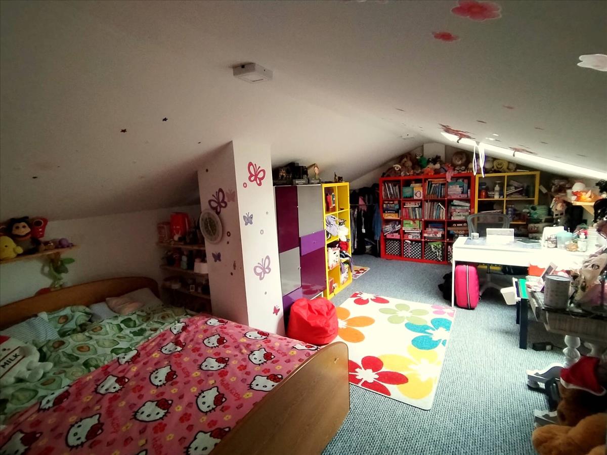 A felső szint 2019-ban teljes felújításon esett át, így gyakorlatilag újszerű állapotú. a 95 négyzetméteres tetőtérben egy világos nappali-konyha, spájz, folyosó, két hálószoba, fürdőszoba és előtér kapott helyet, míg a padlástérben egy különleges hangulatú, 15 négyzetméteres kuckós szoba lett kialakítva. Ez a kis tér tökéletes lehet dolgozószobának, gyerekszobának vagy akár egy nyugodt olvasósaroknak, ahová az ember elvonulhat a világ zajától.