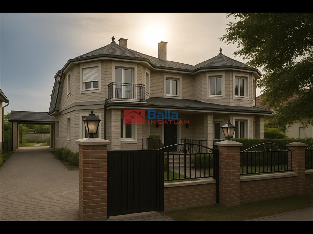 Balatonboglár csendes részén, 2 km távolságban a Balatontól, 310 m2 alapterületű, 7 szobás, amerikai koloniális építészet jellegzetességeit hordozó két szintes családi ház eladó.