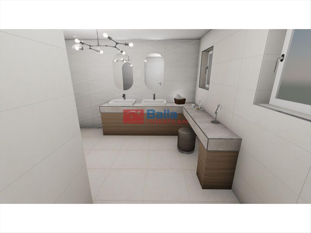Helyiségei földszinten: nappali, szoba, konyha, étkező, kamra, előszoba, háztartási helyiség, fürdőszoba, külön mellékhelyiség, gardrób, télikert; hozzá tartozó 38 m2 terasz és 44 m2 duplagarázs, tároló. emeletén a tágas előtérből 4 hálószoba nyílik gardróbokkal, melyből kettő saját fürdőszobával rendelkezik.