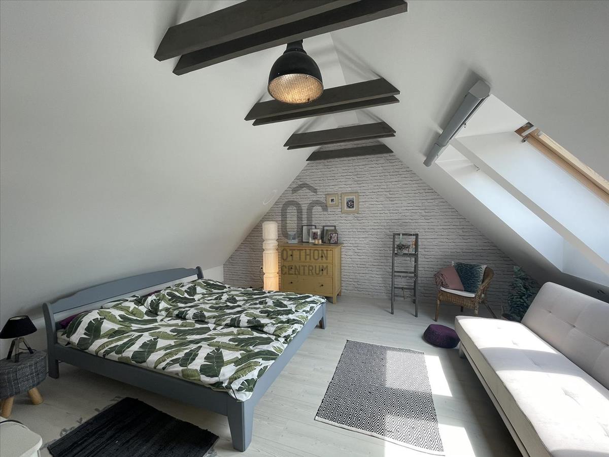 Ritka alkalom hogy megvásárolja ezt a gyönyörű kő házat amely ízlésesen felújítva, zöld lombok között bújik meg egy magán út végén.Már a homlokzat is csalogató és belépve kellemesen hűs és meghitt hangulat fogad. a régi és új tökéletes találkozását láthatjuk itt. a konyha és ebédlő egy térségben helyezkedik el, innen nyílik a fürdőszoba és a nagy méretű nappali /hálószoba. Itt kapott helyet egy cserépkályha is. Az emeleti apartman külső kő lépcsőn közelíthető meg és a modern, új tetőbeépítés hűen követi az épület stílusát.