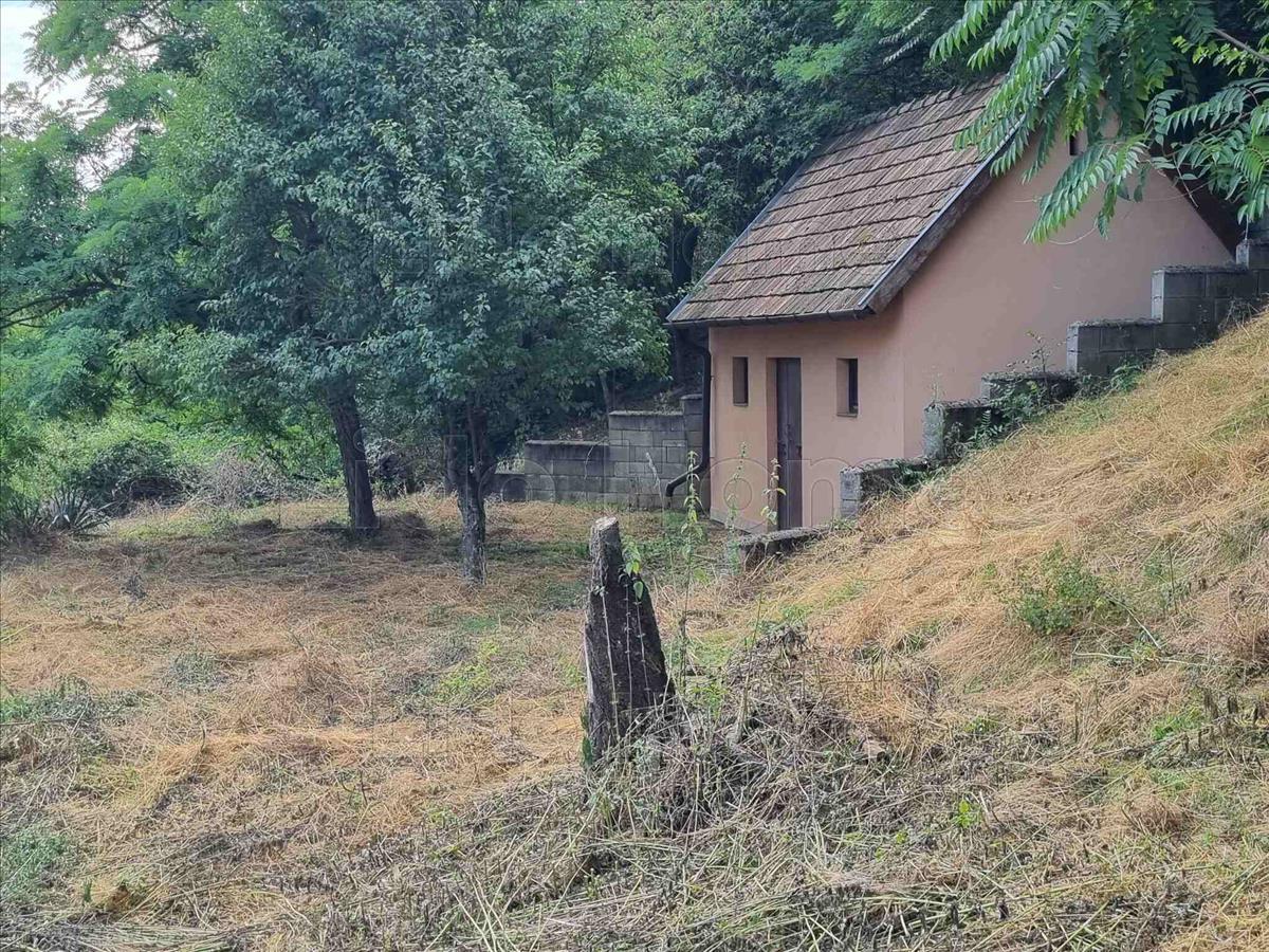 -Az udvarhoz csatlakozik egy meredekebb telekrész diófákkal (kb. 700 m2), melynek aljában támfallal körülölelt, téglából újjáépített két helyiséges présházat, benne pincét találunk.