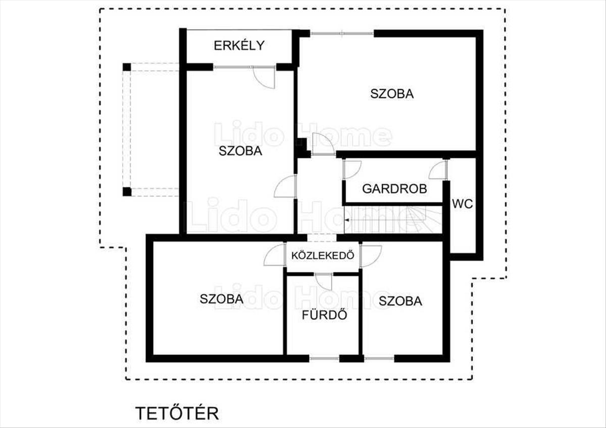 -Tetőtér: Négy további szoba, amelyek szintén jól kihasználhatóak, fürdőszoba, külön wc, közlekedő.
