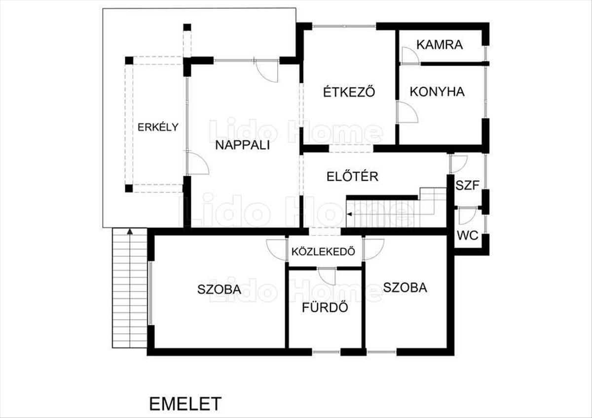 -Emelet: Konyha-nappali-étkező, két kényelmes hálószoba, kádas és zuhanyzós fürdőszoba, külön wc, közlekedő, amely elegendő teret biztosít családok számára.