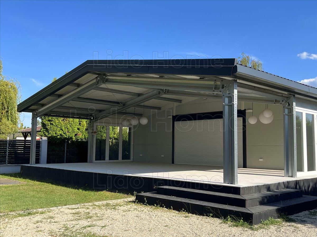 Ez a letisztult formavilágú, kortárs lakóház a legmodernebb építészeti megoldások és a természetközeli életérzés ötvözete. a feszített acélszerkezetes technológiának köszönhetően a ház szerkezete nemcsak időtálló és rendkívül stabil, hanem lehetővé teszi a tágas, oszlopmentes belső terek kialakítását is, amelyek szabadon formálhatók az egyéni igények szerint.