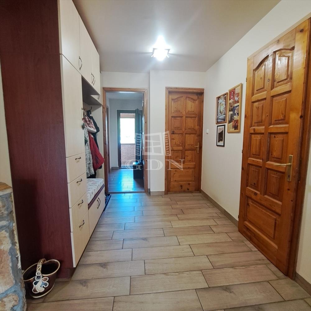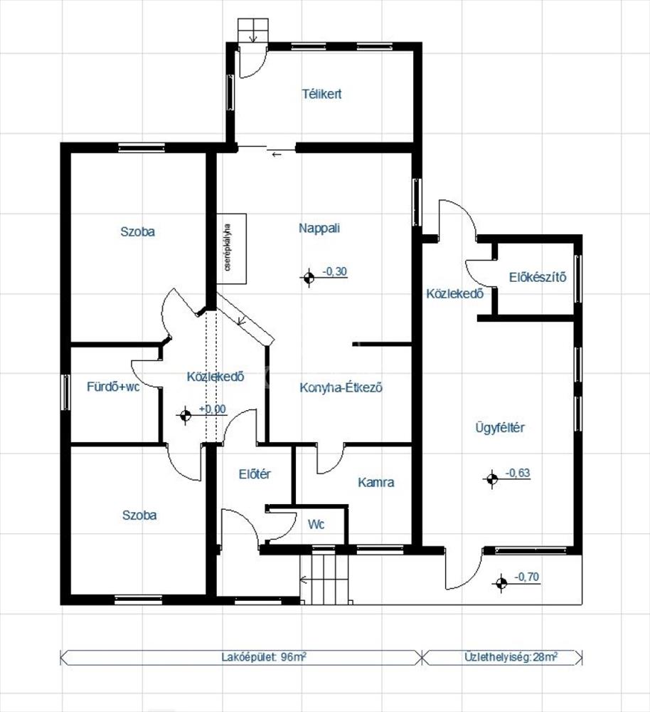 - a lépcsős és fedett bejáratról az előtérbe jutunk. Innen nyílik a 2 szoba, az amerikai konyhás nappali; a nappaliból nyíló télikert, a fürdőszoba és wc.