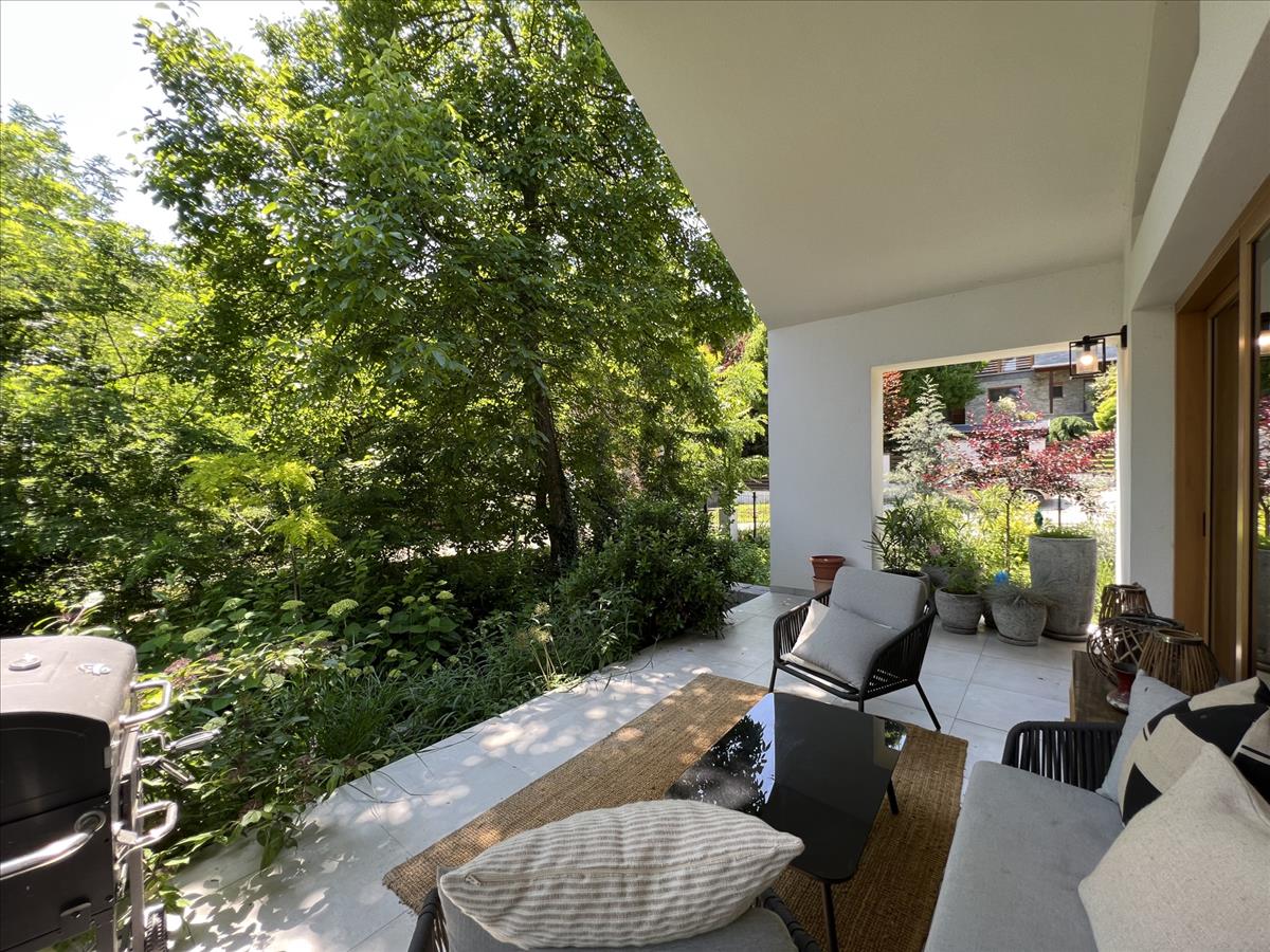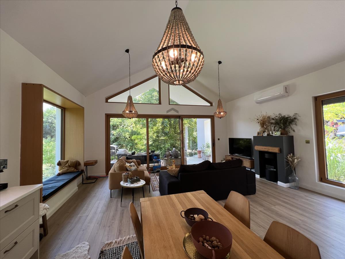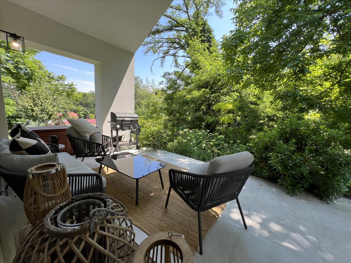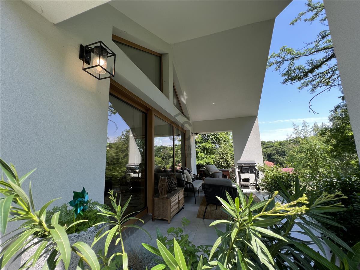 A 2020-ban épült ingatlan, egy gyönyörűen parkosított 890 nm-es telken fekszik.