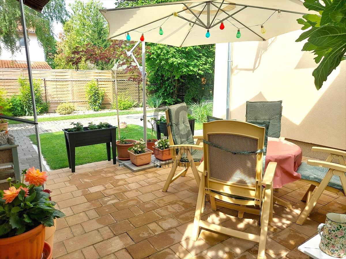 A nappaliból egy hatalmas 35m2-es, árnyas teraszra léphetünk ki, amely növényekkel határolva ad intimitást az utca felől.