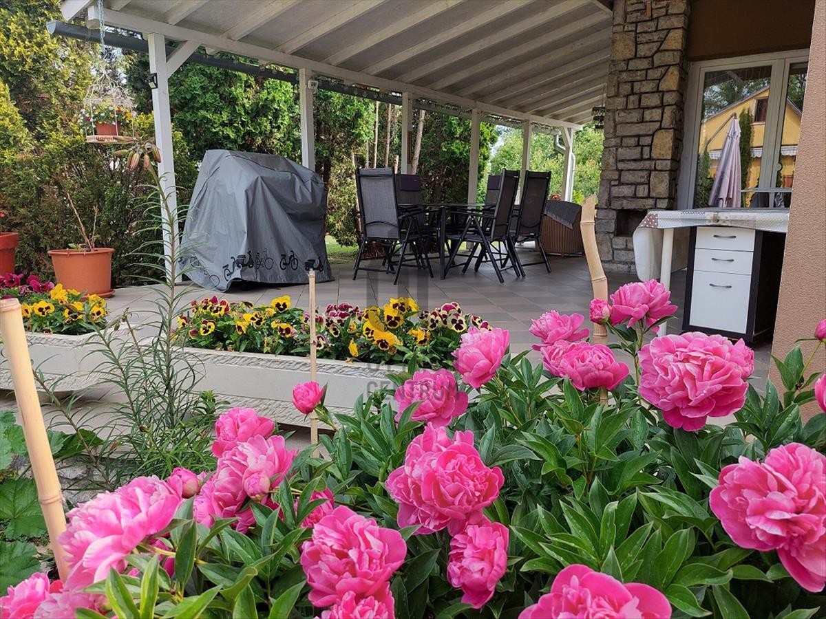 A 720m2-es kert szépen gondozott, dísznövényekkel tarkított. Locsolása fúrt kútból megoldott.
