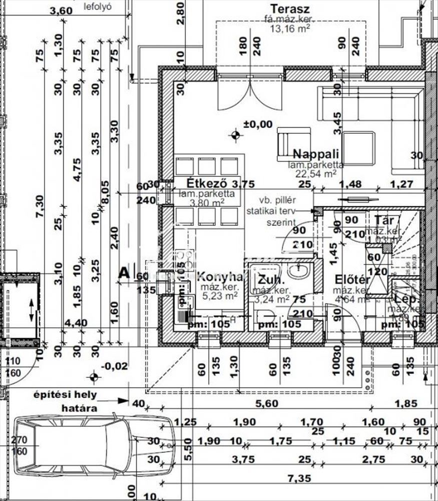 - alsó szint: amerikai konyhás nappali nagy terasszal, konyha és kamra, zuhanyzós fürdőszoba.