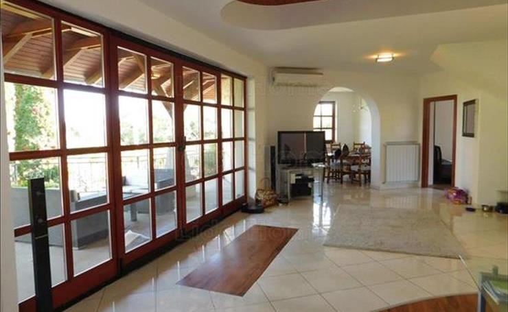 -a jelenleg lakott földszinti lakrész 130 m2-es. Helyiségei: előtér, nappali, étkezős konyha, kamra, közlekedő, 4 szoba, 2 fürdőszoba, egy külön wc kézmosóval. a szinthez 2 nagy terasz kapcsolódik, összesen 70 m2-el.