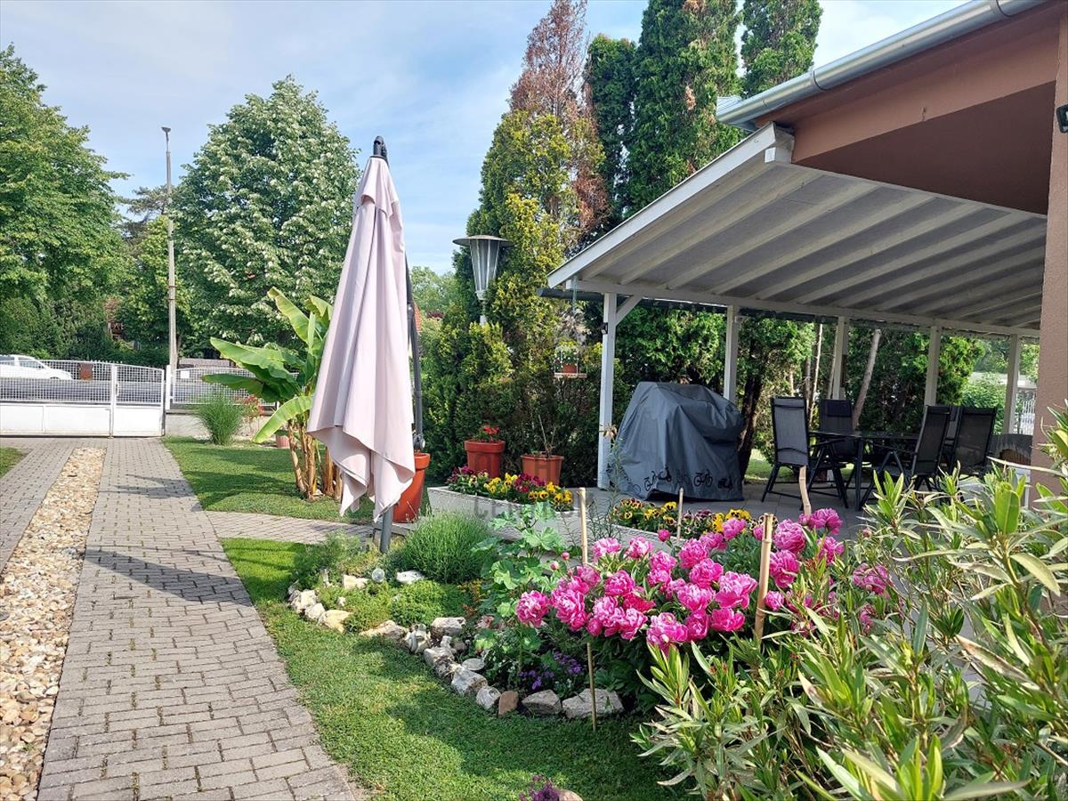 A 720m2-es kert szépen gondozott, dísznövényekkel tarkított. Locsolása fúrt kútból megoldott.