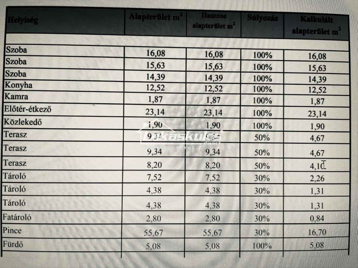 Az ingatlan mért, súlyozott alapterülete: 126m2