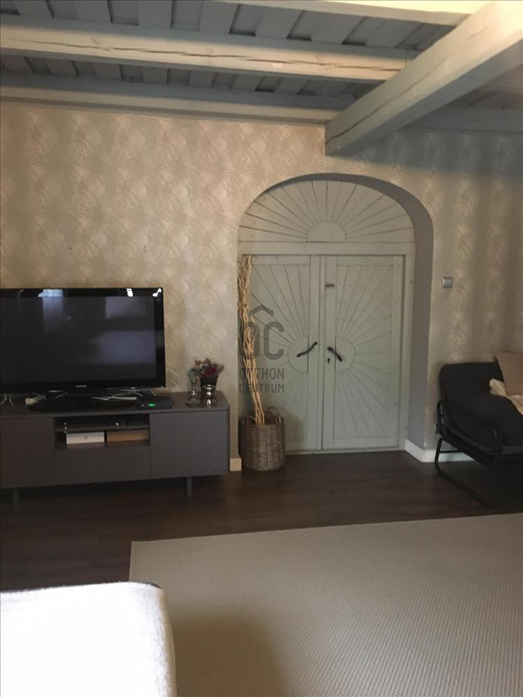 Az alsó szinten tágas, kényelmes nagy nappali, konyha étkezővel, tároló, fürdőszoba és egy nagyon hangulatos borospince, ivó, társalgó található.