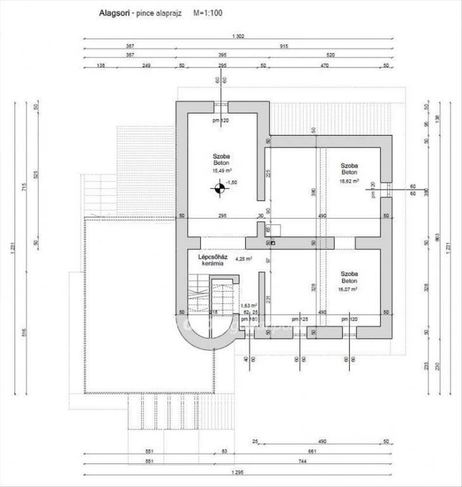 Alagsor: 56, 06 m2, földszint: 89, 59 m2, emelet: 60, 17 m2, teraszok összesen: 85 m2.
