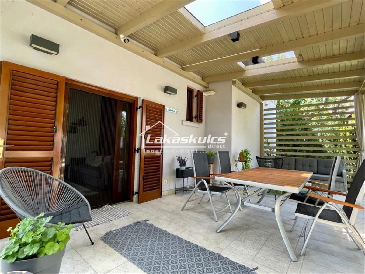 Az ingatlan elhelyezkedése rendkívül jó, minden pár perc alatt megközelíthető, a part 8 perc sétára, piac, boltok, gyógyszertár, önkormányzat, pékség, étterem, kávézó 3 percre sétatávolságban.