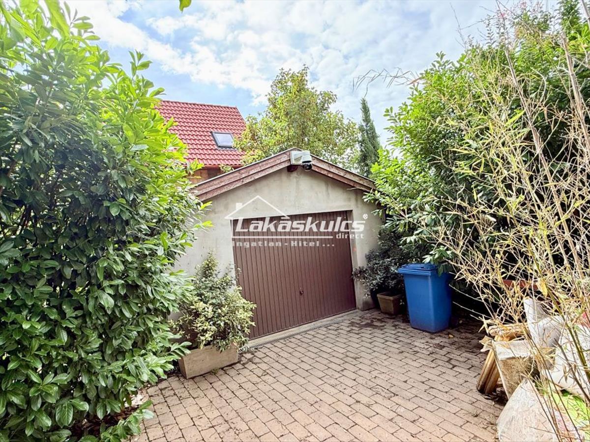 Az ingatlanhoz tartozik egy nagy méretű 28m2-es garázs, ami a kisebbik ikerfél nappali hátsó falával van összeépítve, így akár össze is nyitható a nappali térnövelésére, vagy egy földszint hálószoba kialakítására, vagy mindkettő.