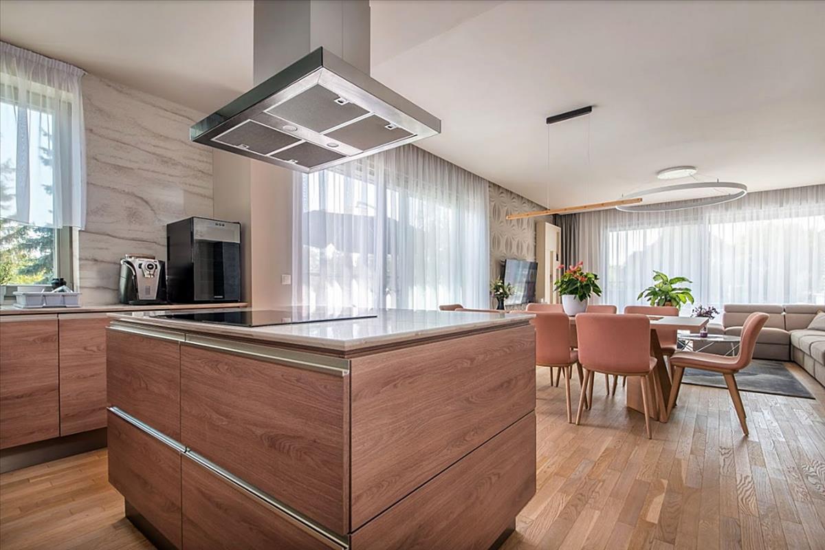 - konyha igényes konyhabútorral, prémium minőségű bosch gépekkel, konyhaszigettel és kamrával