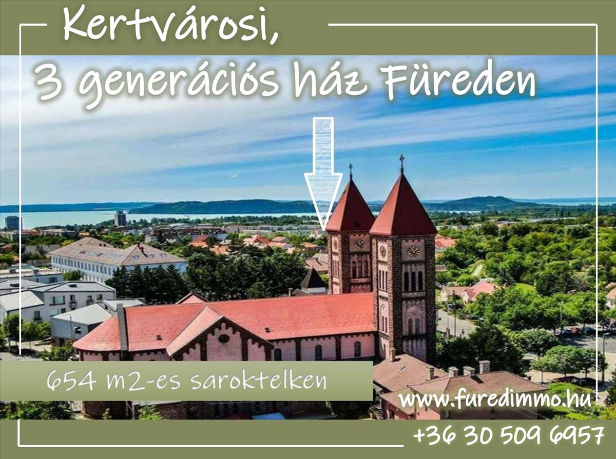 Balatonfüred nagyon kedvelt, kertvárosi részén, szép, rendezett és jórészt új családi házak között található ez a nagyméretű, sokféle célra hasznosítható családi ház.Az önálló, 654 m2-es saroktelek akár két külön kapubejárót is lehetővé tesz, beépíthetősége 20%, ami a mostani 110 m2-es alappal még nincs teljesen kihasználva.