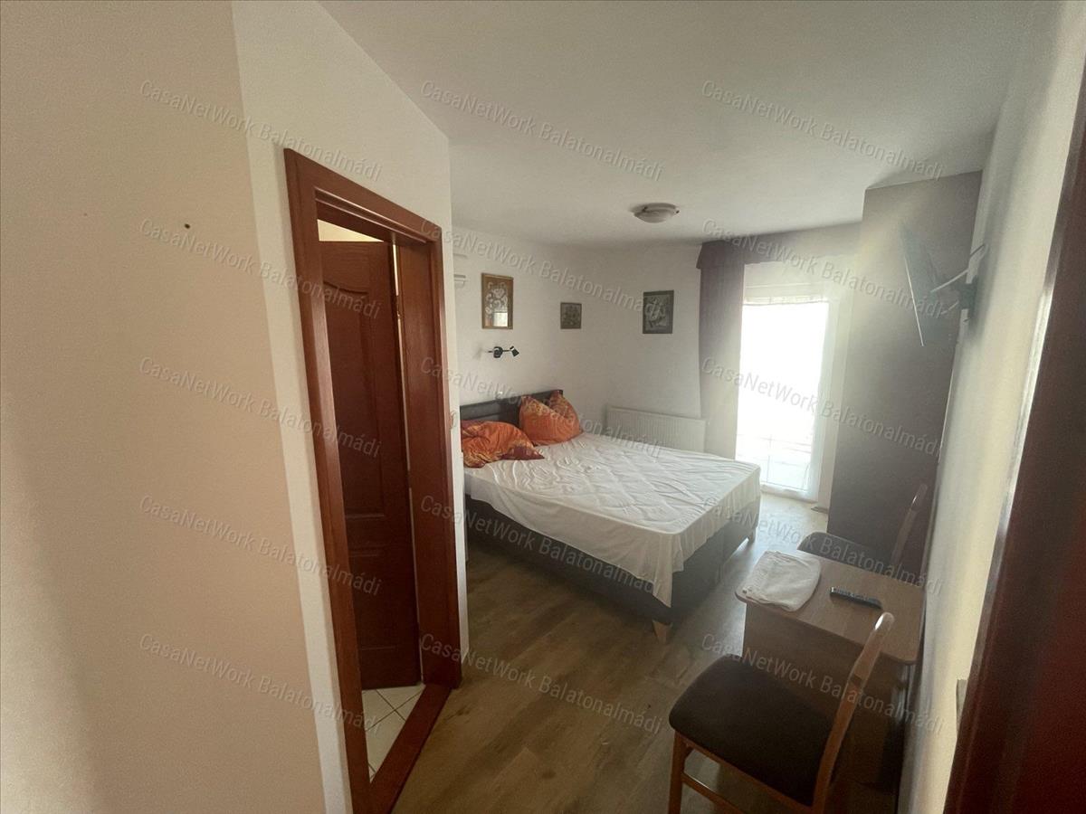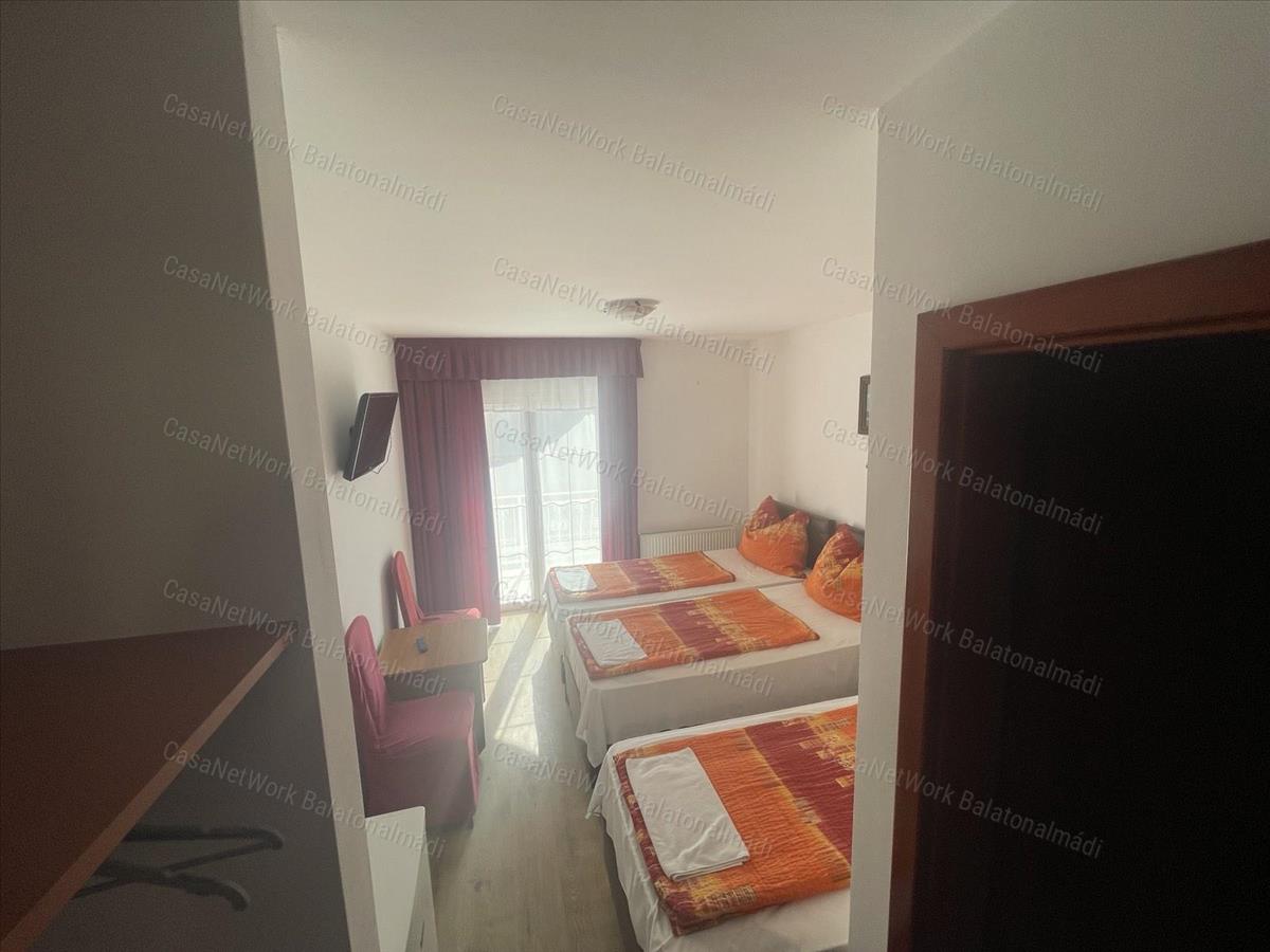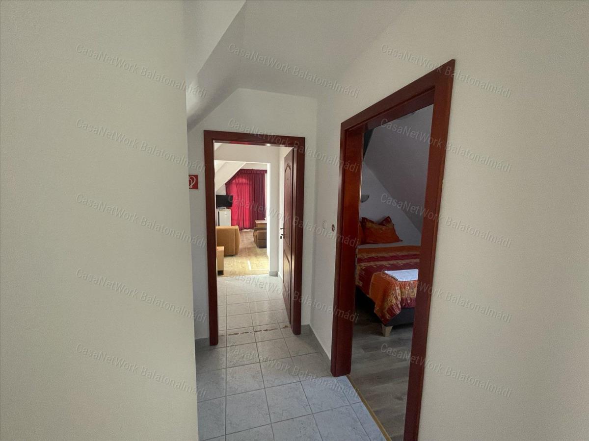 Az épület összesen 14 szobával rendelkezik, amelyek mindegyike saját klímaberendezéssel felszerelt, így az ingatlan az év minden időszakában kényelmes használatot biztosít. a belső terek elrendezése jól átgondolt, a szintek kialakítása pedig ideális vendéglátási funkcióra, ugyanakkor könnyen alakítható akár egy különleges balatoni magánvilla igényeihez is.