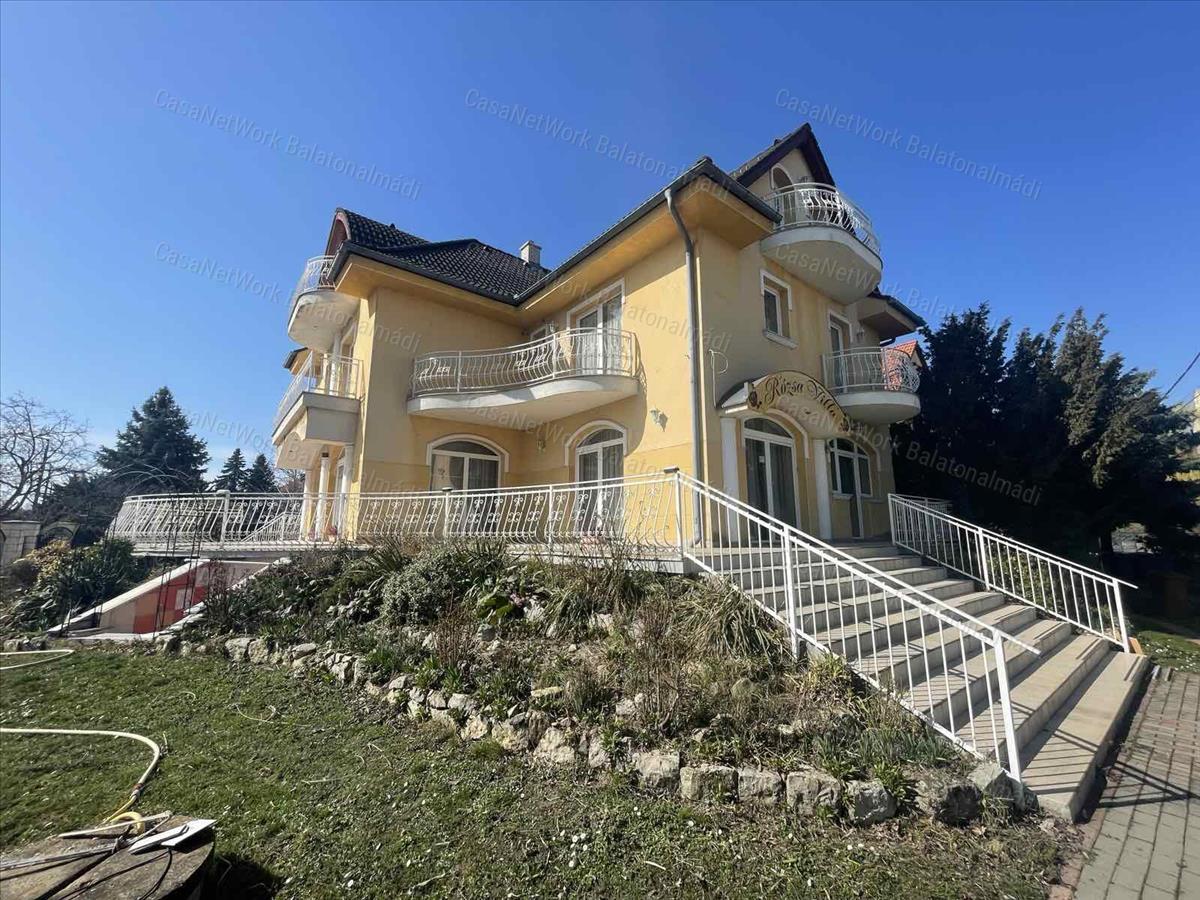 Balatonfüred frekventált részén kínálunk megvételre egy 2004-ben épült, 557 m² alapterületű, háromszintes villát, amely egy 817 m²-es telken helyezkedik el. Az ingatlan korábban vendégházként működött, adottságainak és méretének köszönhetően pedig kiváló lehetőséget kínál szálláshely, panzió, boutique hotel vagy akár exkluzív magánrezidencia kialakítására is.