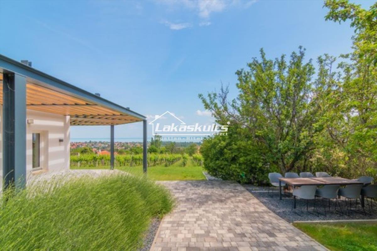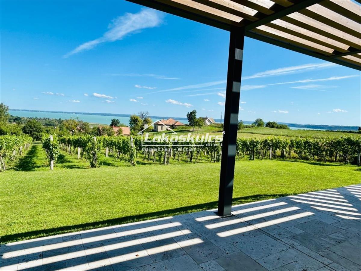 A Balaton a lábunk alatt, örök panoráma a felsőfokon a teljesen intim birtokon új építésű HÁZZAL.