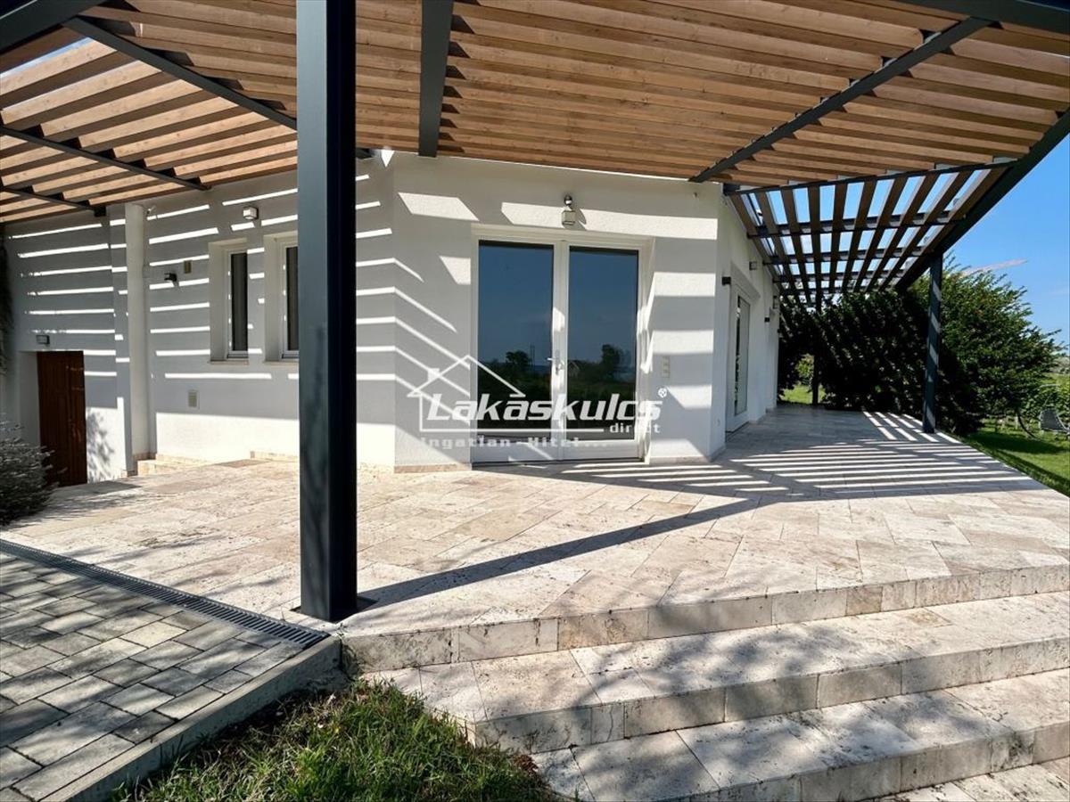 A ház új építésű, 150m2-es +80 m2 terasszal, borospincével+ egy kisházzal.