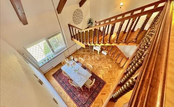 A Balaton északi partjának egyik legszebb városában, Balatonfüreden, kiváló közlekedés és ellátottság mellett, kertvárosi környezetben, 10 perc sétára a vitorlás kikötőtől, és a Tagore sétánytól, 586 m2-es összközműves telken, 1990-ben épült, 190 m2-es lakóterületű, 2 szintes, dupla komfortos, dupla nappalis + 3 hálószobás, a földszinten található nappaliból közvetlen 40 m2 -es teraszkapcsolattal rendelkező, kiváló elosztású, külön nyíló szobás, napos-világos, K-NY-i tájolású, alacsony fenntartású, kombinált gázcirkó és cserépkályha fűtésű, jó állapotú, 2018-ban új thermo ablakokra cserélt, klimatizált, riasztórendszerrel felszerelt családi ház, beépített, gépesített konyhával, nagyméretű tárolóval, garázzsal, úszómedencével, rendezett kerttel, rugalmas költözéssel eladó.