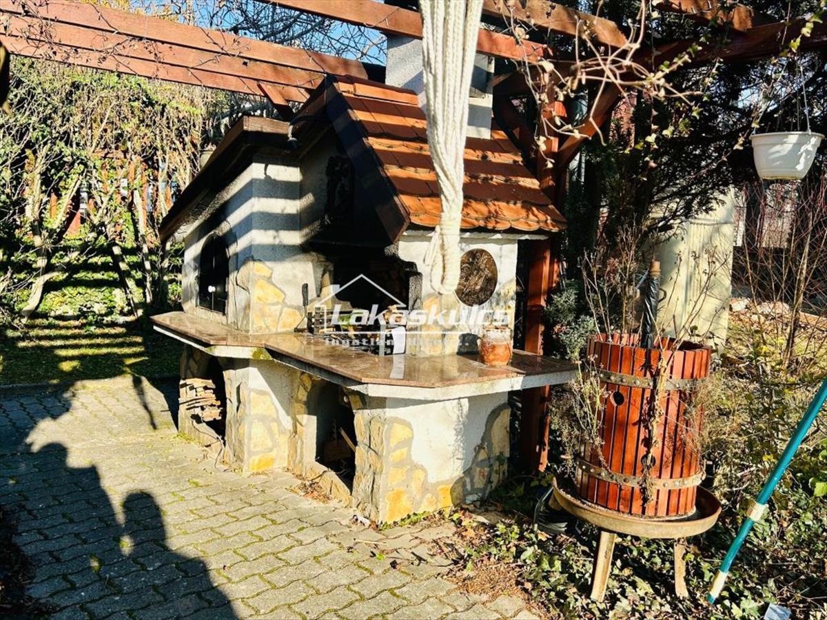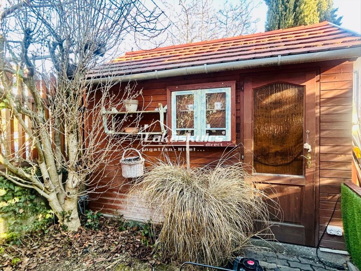 A telek 643 m2, parkosított, medencével, kerti tárolóval, fúrt kúttal, épített kerti grillezővel- sütővel.