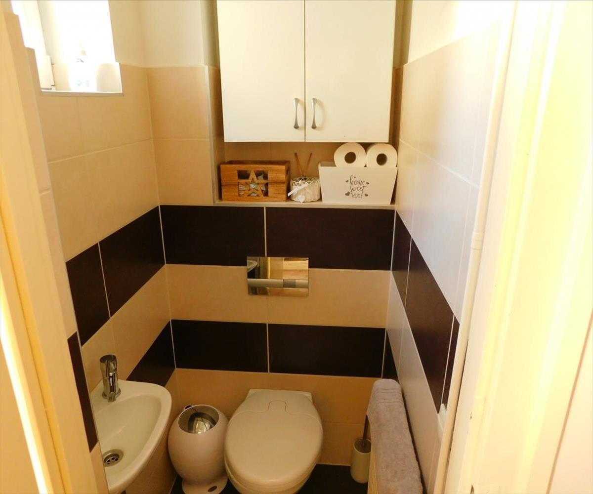 A földszinten egy tágas előszoba fogad, ahonnan nyílik a konyha-étkező, két világos szoba, valamint a tusolós fürdőszoba és a külön wc. Az előszobát és a szobákat összekötő cserépkályha igazi központi eleme a háznak – itt könnyű elképzelni a meghitt téli estéket.