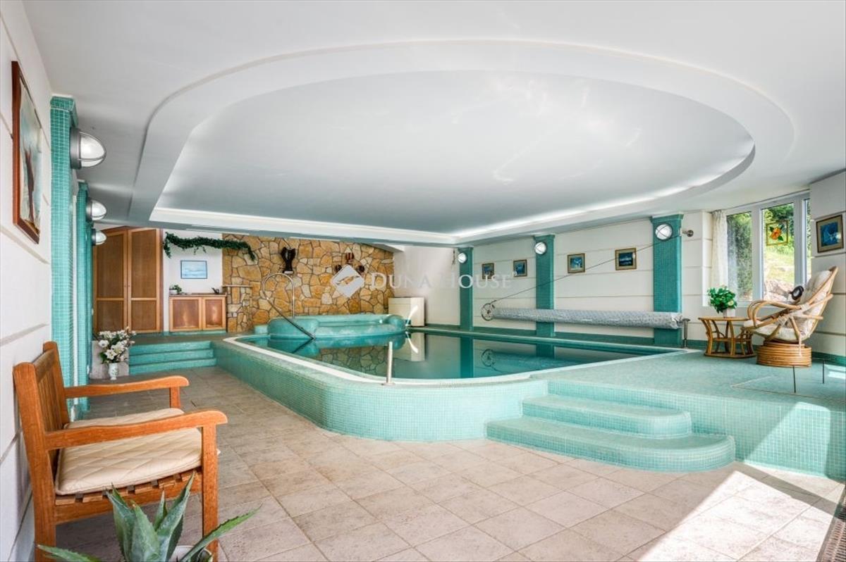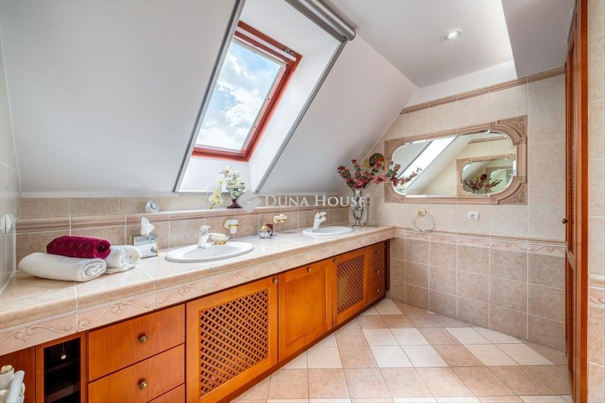 A Balaton legszebb panorámája, parkosított kert, 2 lakosztályos luxusnyaraló Balatonfüreden vált elérhetővé. 6 Beálló a kertben, 2 lakosztály, medence, jacuzzi, tágas épített terek az udvarban és a házban egyaránt - 2004-ben épült villa, ahol a panoráma, a minőségi anyagok és az átgondolt műszaki megoldások igazán érvényesülnek. a képek és a videó igyekszik bemutatni ezt a valóban csak személyesen átélhető összhangot. Minden igényt kielégítő gépiesített konyha étkezővel, előtér és dolgozó sarok, vendégmosdó, kandallós nappali terasszal a panorámás kert felé a földszinten, 2 gardróbos háló, fürdő, jól kihasznált terek az emeleten, nagy szobás, konyhás, fürdős második lakosztály, borospince, mosókonyha, wellness medencével és jacuzzival, tárolók találhatóak az épület alsó szintjén. a ház hasznos alapterülete: 427 nm + a teraszok. Óriásfák, kertész által tervezett tavasztól őszig pompázó, automatizált, parkosított kert, kerti étkező, mely a teljességet biztosítja. a telek mérete: 761 nm. Műszaki felszereltség:- cseresznyefa nyílászárók, - spanyol burkolatok, - kerámia kandalló, - Daikin inverteres hűtő-fűtő, pollenszűrős klíma H tarifás órával, - Buderus kazán, - padlófűtés, padló radiátor, fali radiátor kombinációja, - központi porszívó, - riasztórendszer, - öntözőrendszer, - fúrt kút, mely ivóvíz tisztaságúElhelyezkedésének, összetételének, nagyságának, megközelítési és széles hasznosítási lehetőségeinek köszönhetően saját részre, emellett befektetésnek is egyaránt optimális választás. Kisebb családok, tágas, igényes és egyben elegáns helyet keresők, nagy baráti, ismeretségi körrel rendelkezők, nyugodt elhelyezkedést keresők joggal érezhetik, hogy megtalálták, amire szükségük van. További kérdéseivel, megtekintési szándékával várom hívását. The most beautiful panorama of Lake Balaton, a landscaped garden, a luxury holiday home with 2 suites has become available in Balatonfüred. 6 Parking spaces in the garden, 2 suites, swimming pool, jacuzzi, spacious built spaces in the yard and in the house - a villa built in 2004, where the panorama, quality materials and thoughtful technical solutions really prevail. The pictures and the video try to present this harmony that can only be experienced in person. a mechanized kitchen with dining room that meets all needs, a hallway and work corner, a guest toilet, a living room with a fireplace and a terrace facing the panoramic garden on the ground floor, 2 bedrooms with wardrobes, a bathroom, well-utilized spaces on the first floor, a second suite with a large room, kitchen, bathroom, wine cellar, laundry room, a wellness pool and jacuzzi, storage rooms are located on the lower level of the building. The useful floor area of the house: 427 sq m + the terraces. Giant trees, a gardener-designed, automated, landscaped garden that is magnificent from spring to autumn, a garden dining room, which ensures completeness. The of the plot: 761 sq m. Technical equipment:- cherry wood windows, - Spanish tiles, - ceramic fireplace, - Daikin inverter cooling and heating, pollen-filtered air conditioning with H tariff clock, - Buderus boiler, - combination of floor heating, floor radiator, wall radiator, - central vacuum cleaner, - alarm system, - irrigation system, - drilled well, which has drinking water purityThanks to its location, composition, , accessibility and wide utilization possibilities, it is an optimal choice for both your own home and for investment. Smaller families, those looking for a spacious, sophisticated and elegant place, those with a large circle of friends and acquaintances, and those looking for a quiet location can rightly feel that they have found what they need. I look forward to your call with further questions and viewing intentions.