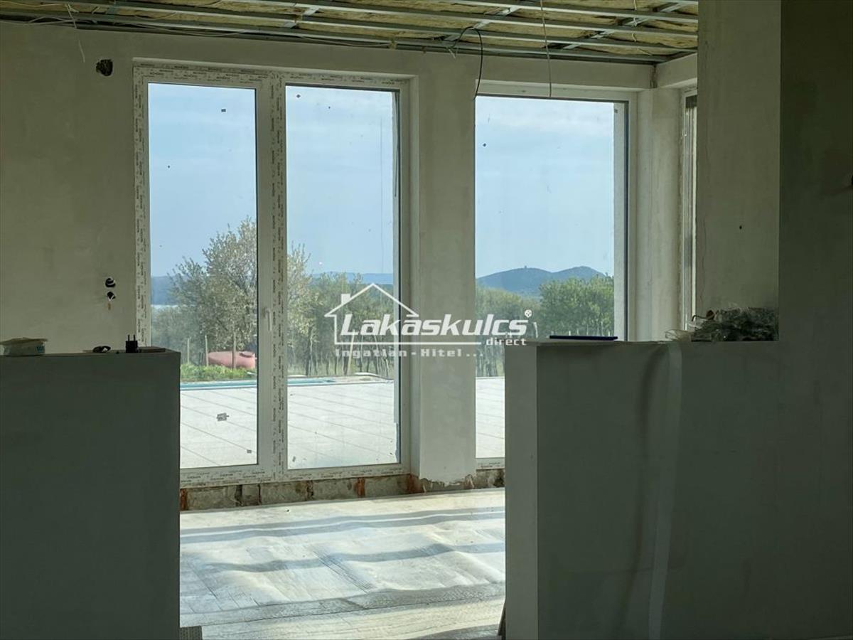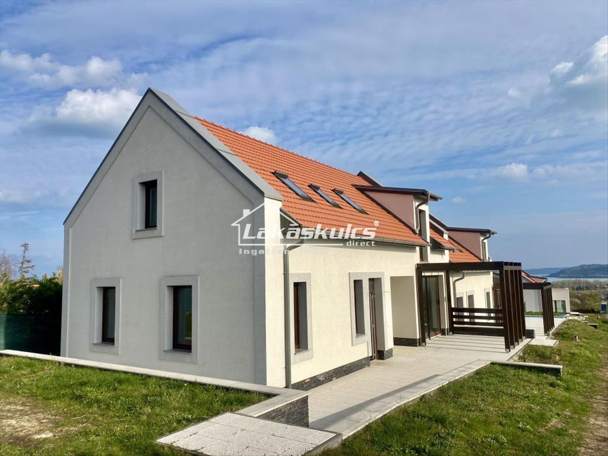 Balatonfüred nyugodt zöldövezeti részén, természet közeli környezetben kínálunk elvehetetlen örökpanorámával új építésű villa jellegű épületetet nagy kerttel és medencével. Az ingatlan belső 2 szintes, földszint és tetőtér. Az épület kialakítása és elrendezése lehetővé teszi, hogy akár 2 külön bejáratú, önálló közművekkel és gépészettel, hűtés-fűtéssel rendelkező ikerházként funkcionáljon, melyek jogilag is külön egységet képeznek. a környék rendezett, sok, szép modern házzal. a panoráma a telek és az épület szinte minden pontjáról élvezhető, zavartalan rálátással a balatonra és a tihanyi FÉLSZIGETRE.AZ épület helyiségei tágasak, világosak, jó elrendezéssel. Mindkét szinten óriás nappali, mindkettő amerikai konyhássá alakítható. a földszinten még 2 háló, 2 fürdő, tároló, wc. Az épületet körül ölelő teraszok teljes nagysága összesen 208 nm. Ebből a déli oldali terasz, mely előtt a medencét elhelyezték 150 NM.