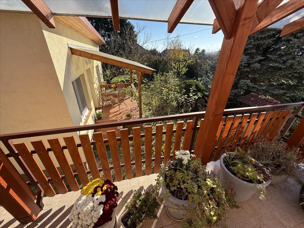 Az emeleten két hálószoba, az egyik erkélyes, mely külön kis reggeli menedék, ahol egy kávé mellett élvezhetjük a természetet, továbbá e szinten egy praktikus beépített szekrénnyel ellátott közlekedő és egy zuhanyzós fürdő kapott helyet.