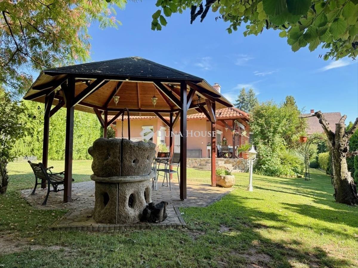 *** Eladó családi ház gyönyörű kerttel! ***Megvételre kínálok Balatonfűzfő csendes kertvárosi övezetében, átmenő forgalomtól mentes utcában, egy 2004-es építésű könnyűszerkezetes családi házat. Az egy szintes, bruttó 150 négyzetméteres, 5 szobás ingatlanhoz 879 négyzetméteres, gyönyörűen parkosított telekterület tartozik. a házban tágas 42 négyzetméteres amerikai konyhás nappali, kamra, 3 szoba, dolgozószoba, gardrób, mosókonyha, 2 db fürdő+WC, kamra, 2 db részben fedett terasz (összesen 32, 5 nm), valamint egy 18, 5 négyzetméteres zárt garázs került kialakításra. a fűtésről, és a melegvíz ellátásról Saunier Duval gáz kombi kazán gondoskodik radiátoros hőleadással. Kiegészítő fűtésként a nappaliban egy hangulatos fatüzelésű kandalló is beszerelésre került. Az ingatlant délnyugati tájolásának, valamint nagyméretű üvegfelületeinek köszönhetően világos, tágas terek jellemzik. a biztonságról Paradox riasztórendszer gondoskodik. a kert gyönyörűen parkosított, szépen beállt, és gondosan válogatott növényzettel rendelkezik. Az öntözés fúrt kútról megoldott. a családi összejövetelek biztosítására egy fedett, fa kerti szaletli is telepítésre került bográcsozó hellyel. Az ingatlan nyaralóként, és állandó lakhatásra egyaránt kiváló választás. Amennyiben hirdetésem felkeltette érdeklődését, valamint további információra van szüksége, várom hívását.+36302149474