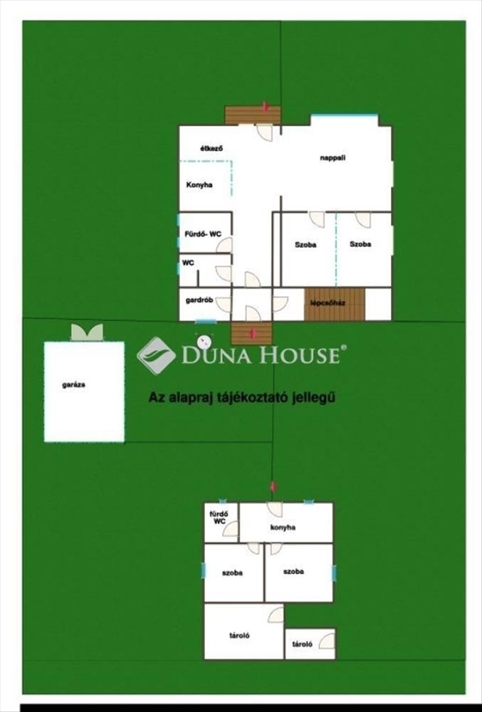 A családi házban két egymástól teljesen különválasztott lakrész található. Az épület belső, közös lépcsőházzal egybenyitható.