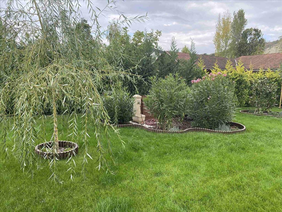 A pázsit alatt vakondháló van, a kert kútról is működtethető automata öntözőrendszerrel ellátott. a telken található még egy kinti konyha egy villanyról és gázpalackról is működtethető Broil King típusú rozsdamentes acélból készült kerti grillel. Ezen kívül még 2025-ben elkészült egy 1, 2 méterre kiemelt pozícióban elhelyezett 8 x 4 méteres medence, amely az extra erősségű ellenáramoltatónak köszönhetően akár sportolásra is tökéletes választás! Az élményt fokozza a hatalmas napozó terasz is.